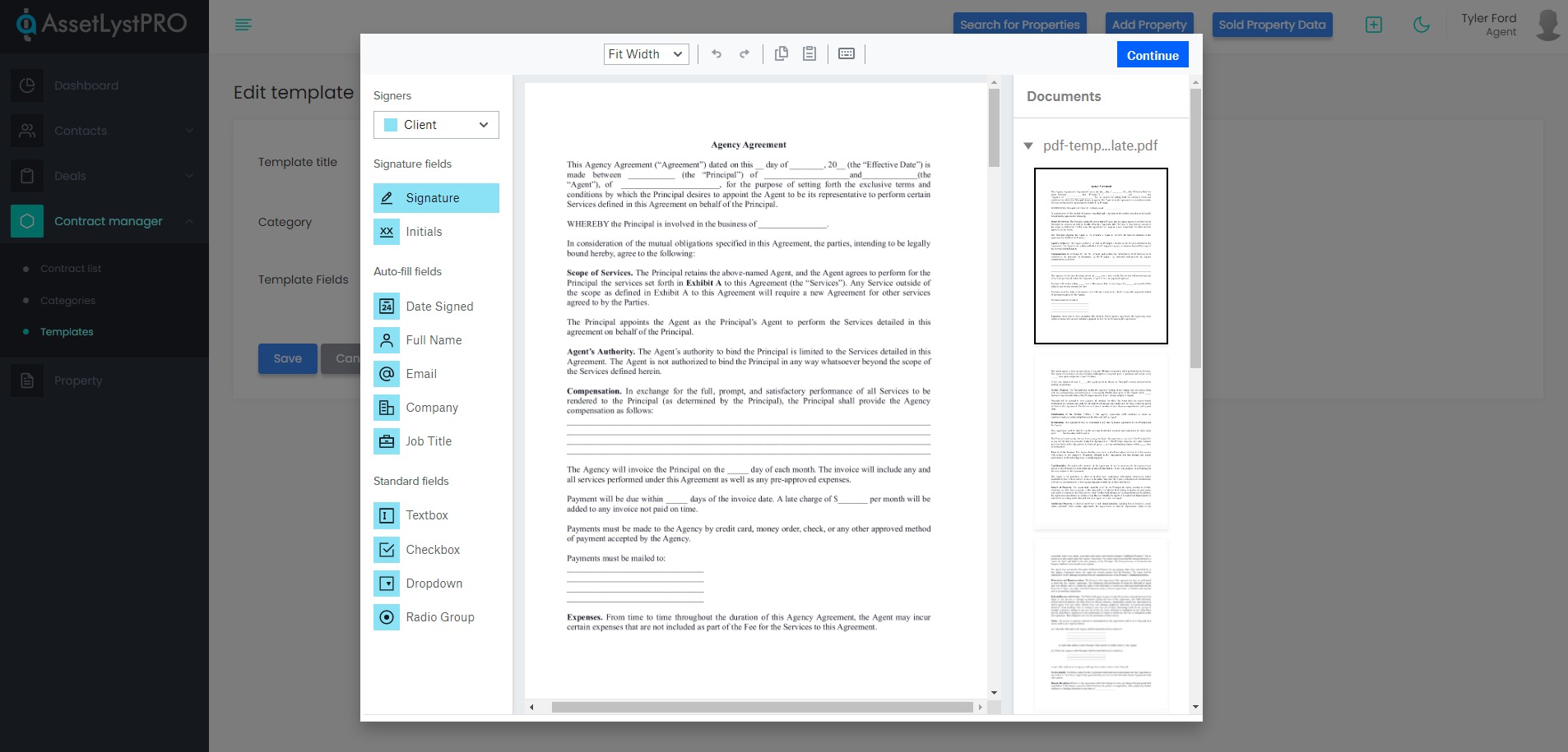Upload your contracts approved by your broker and easily send to clients who can sign from their phone or desktop. The signed document is saved to the deal and the contact it was sent to.